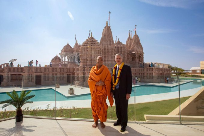The previous day the LDS newsroom also posted pictures of a visit LDS Apostle David A. Bednar made to the United Arab Emirates to meet with the local leader of the BAPS faith, His Holiness Brahmavihari Swamiji.
